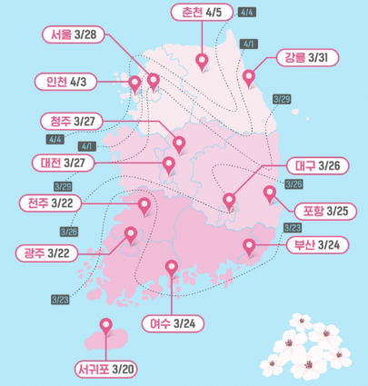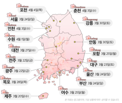 벚꽃 개화시기를 지도로 확인해 보세요.