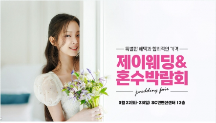 드디어 결혼 시즌이 다가왔습니다. 결혼을 준비하시는 예비 신혼부부들은 결혼 준비로 이 시간이 어떻게 지나가는지도 모르실텐데요. 그렇다면 3월에 개최되는 웨딩박람회에 오셔서 많은 정보와 좋은 선택 하시면 어떨까요?