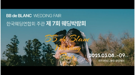 - 한국웨딩연합회 주관 제7회 제주 웨딩박람회 : 2025.03.08 ~ 2025.03.09